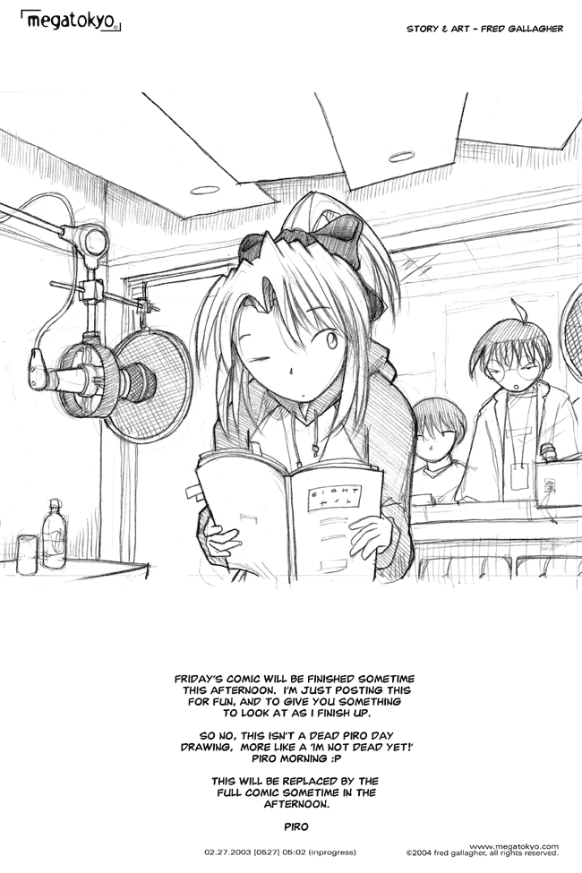 The first panel of this strip was up for a day as a placeholder while the rest of the strip was being finished.